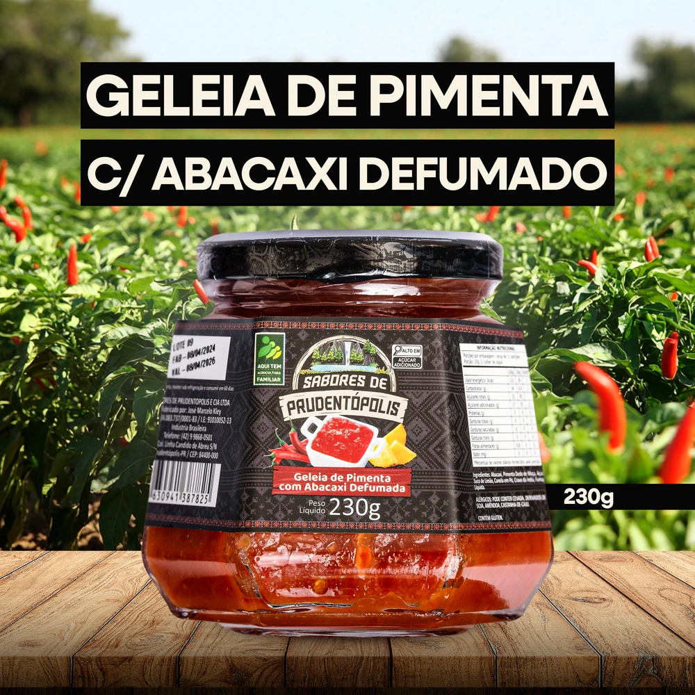 Experimente a Geleia de Pimenta com Abacaxi Defumada Sabores de Prudentópolis, uma combinação ousada e irresistível que une o picante das pimentas com a doçura e o sabor defumado do abacaxi. Feita com ingredientes naturais e cuidadosamente selecionados, esta geleia é perfeita para acompanhar carnes, queijos ou ser utilizada como molho em pratos sofisticados. A fusão única de sabores proporciona uma experiência gastronômica surpreendente, refletindo a criatividade e o cuidado da nossa produção artesanal.